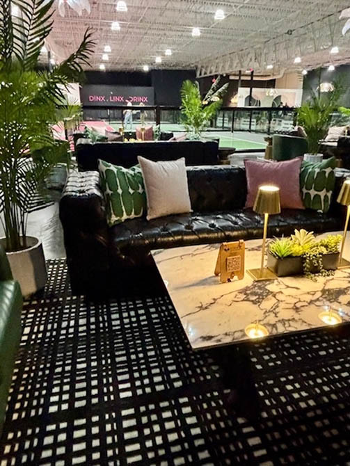 DINX offers a variety of programming—from intro beginner clinics (some of which are free) to open play and league programming for both pickleball and golf. The facility is also available for private event rentals. “We have a vibrant social scene,” David noted. “Our space is unlike anything else currently available in this area in terms of sports entertainment. It feels more like a chic lounge than a pickleball court or a gym.”