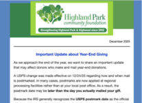 Because the IRS generally recognizes the USPS postmark date as the official gift date, this could affect whether a mailed donation is recorded as a 2025 contribution.